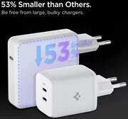Ce chargeur compact, d'une puissance totale de 65W, permet de rétablir l'alimentation de manière ultra-rapide et sûre pour des appareils tels que les téléphones, les tablettes, les consoles portables et les Macbooks. Le PE2106EU dispose de deux prises USB-C avec la norme PD. Grâce à la technologie utilisée avec le nitrure de galium, le chargeur dissipe moins de chaleur, ce qui permet une charge rapide comme l'éclair avec un appareil de taille réduite.