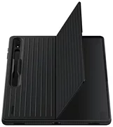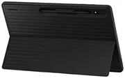 Coque de protection pour Galaxy Tab S8 Ultra Une charnière spéciale vous permet de régler la Galaxy Tab S8 Ultra dans la position optimale. La pente qui vous permet de regarder du contenu varie de 30° à 75°, vous pouvez donc le faire assis droit ou allongé et vous détendre. Et une fois que vous êtes prêt à prendre la route, vous pouvez facilement plier l'étui pour emporter votre tablette avec vous.Vous pouvez maintenant charger le stylet S Pen en le rangeant en toute sécurité. Il suffit de l'insérer dans le logement astucieusement conçu à l'arrière de la coque de protection de la tablette S8 Ultra et le stylet se chargera immédiatement. Voici un étui résistant aux dommages et agréable au toucher. La coque de protection est dotée d'une bordure en TPU et d'un dos en polycarbonate durable qui protège votre Galaxy Tab S8 Ultra dans les coins et à l'arrière. Et en même temps, il est confortable de rester dans la paume de la main.Compatibilité :Galaxy Tab S8 Dimensions :214,3 x 332,2 x 12 mmPoids : 442 g