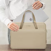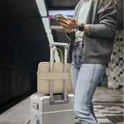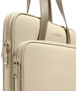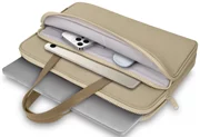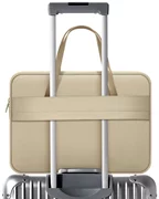 Sa fonctionnalité se manifeste par la disposition astucieuse de deux poches séparées - l'une dédiée à l'ordinateur portable, l'autre aux accessoires essentiels. Les poignées confortables en éco-cuir permettent de porter le sac à la main, tout en créant un design élégant. Une attache supplémentaire permet de le passer sur la poignée d'une valise, ce qui est particulièrement pratique en voyage.