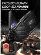 Le Supcase Unicorn Beetle Pro est un étui qui a subi des tests de performance en culbutage, 26 fois à une hauteur allant jusqu'à 1,2 m, recevant ainsi le certificat militaire américain MIL-STD 810G-516.6.