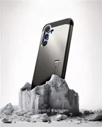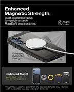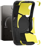 Cas de la sérieArmure résistante marquesSpigen est une version améliorée de son prédécesseur.L'étui est doté d'un anneau magnétique compatible avec le système de fixation et de recharge sans fil MagSafe, ce qui permet d'utiliser rapidement et facilement la technologie de la marque Apple.
