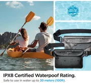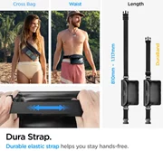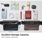 Sachet étanche universel pour appareils mobiles, clés, billets de banque, etc.Fixé à l'aide de trois attaches pour garder les objets qu'il contient aussi en sécurité que possible.La conception de la housse Spigen A620 est idéale pour les situations telles que le kayak ou la plage.L'ensemble de la sacoche a une dimension de 22 x 15 cm et la partie appropriée mesure environ 20 x 12 cm*.